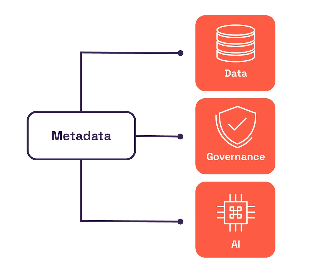 For example, instead of hard-coding access rules into individual platforms, teams reference shared metadata signals such as sensitivity classification, usage context, and data ownership to determine whether an AI agent, workflow, or user should be granted access. The agent doesn't need custom guardrails built into the model. It follows the same metadata-governed rules as every other consumer of that data, improving governance across generative AI and providing richer context to AI models.